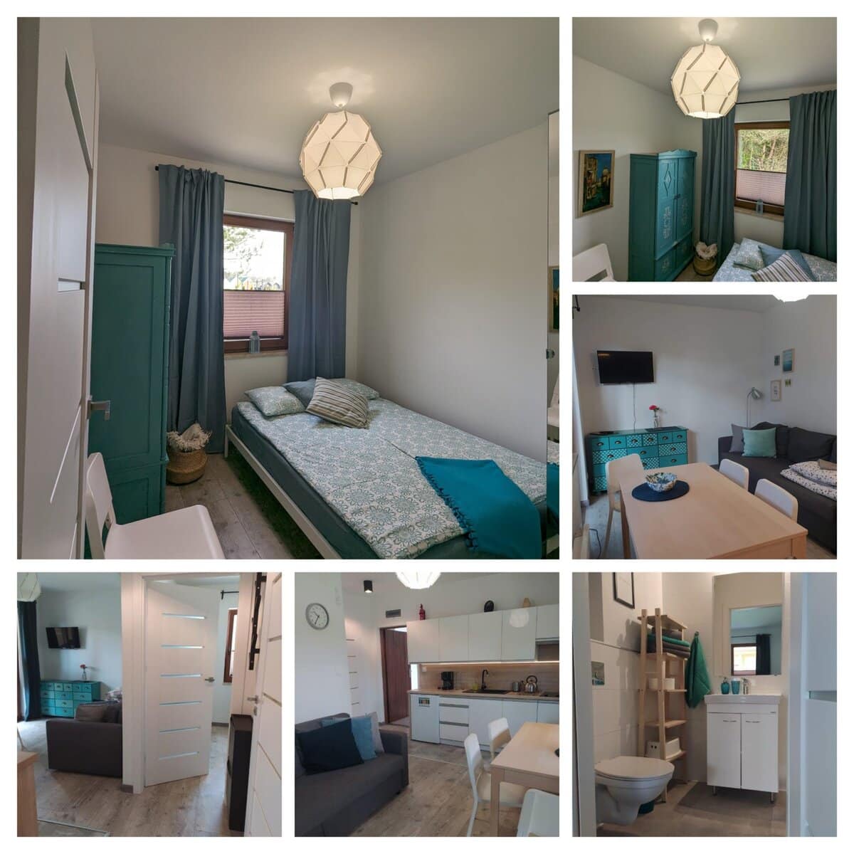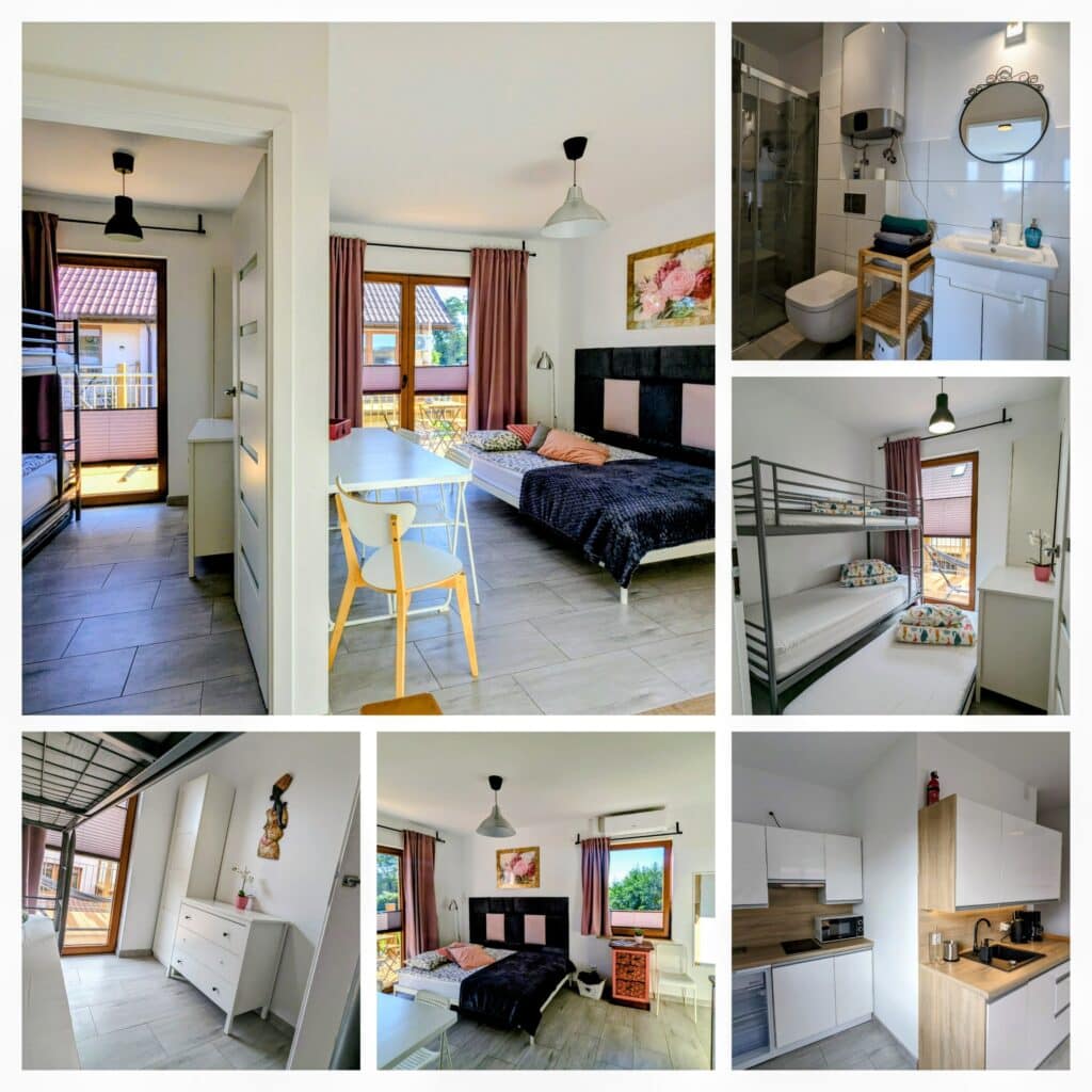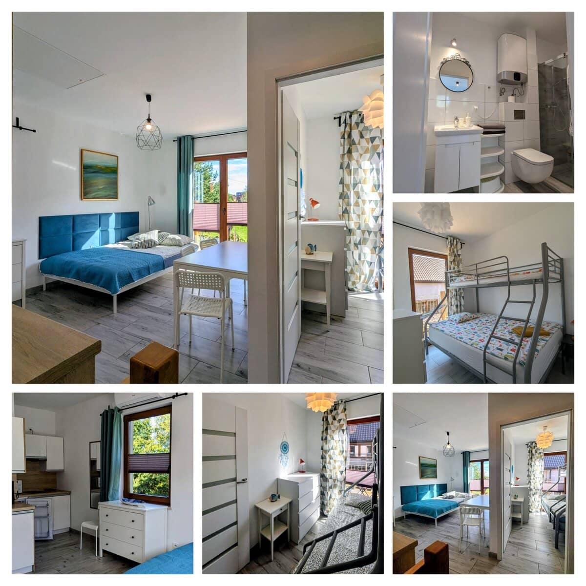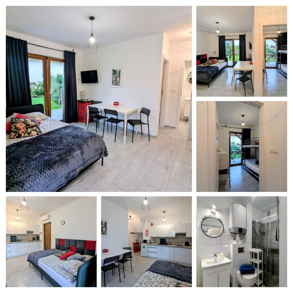 Apartamenty 2, 5, 4, 12 posiadają łóżka małżeńskie w sypialni. Pozostałe apartamenty mają łóżka piętrowe.